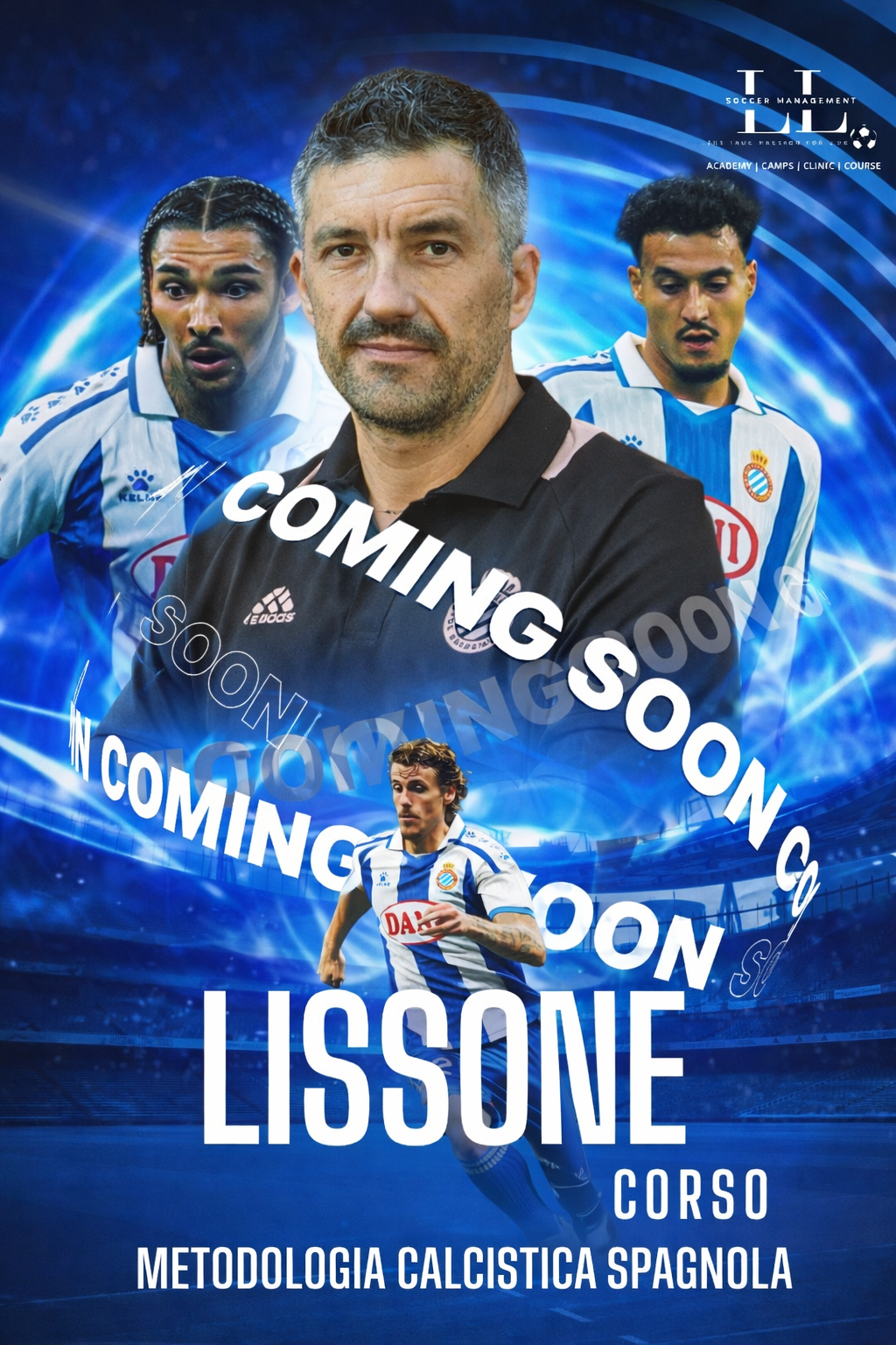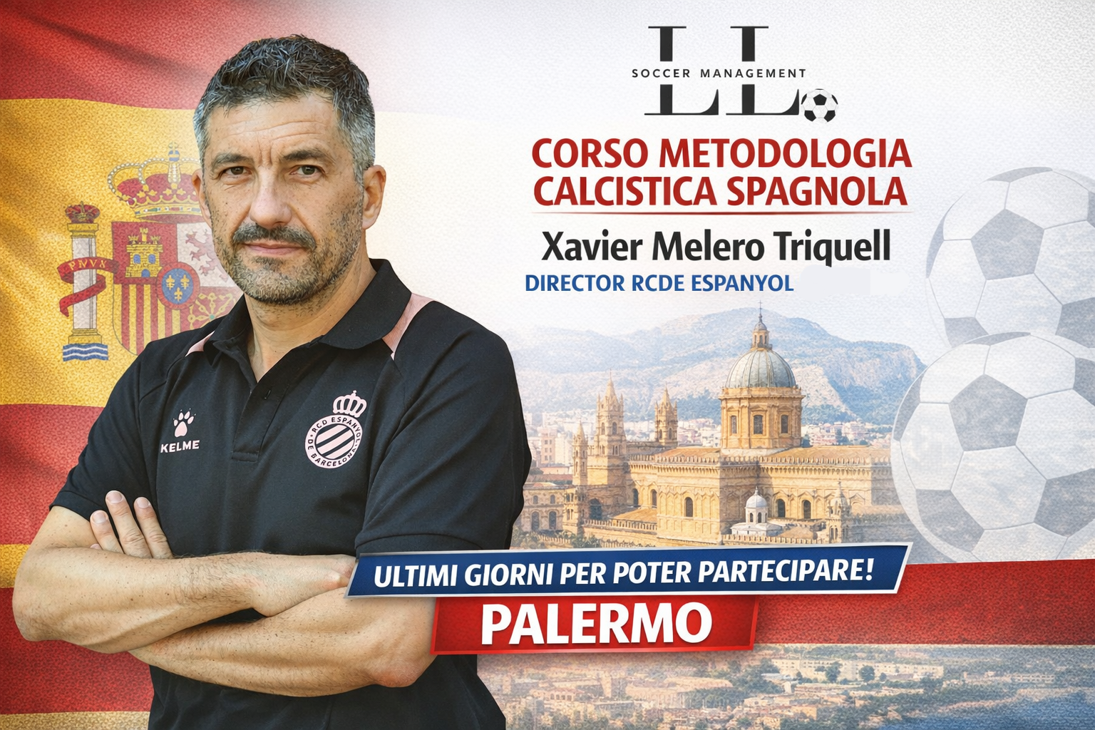 La prossima settimana online la locandina ufficiale del corso con Xavier Melero Triquell, Director RCDE Espanyol de Barcelona.